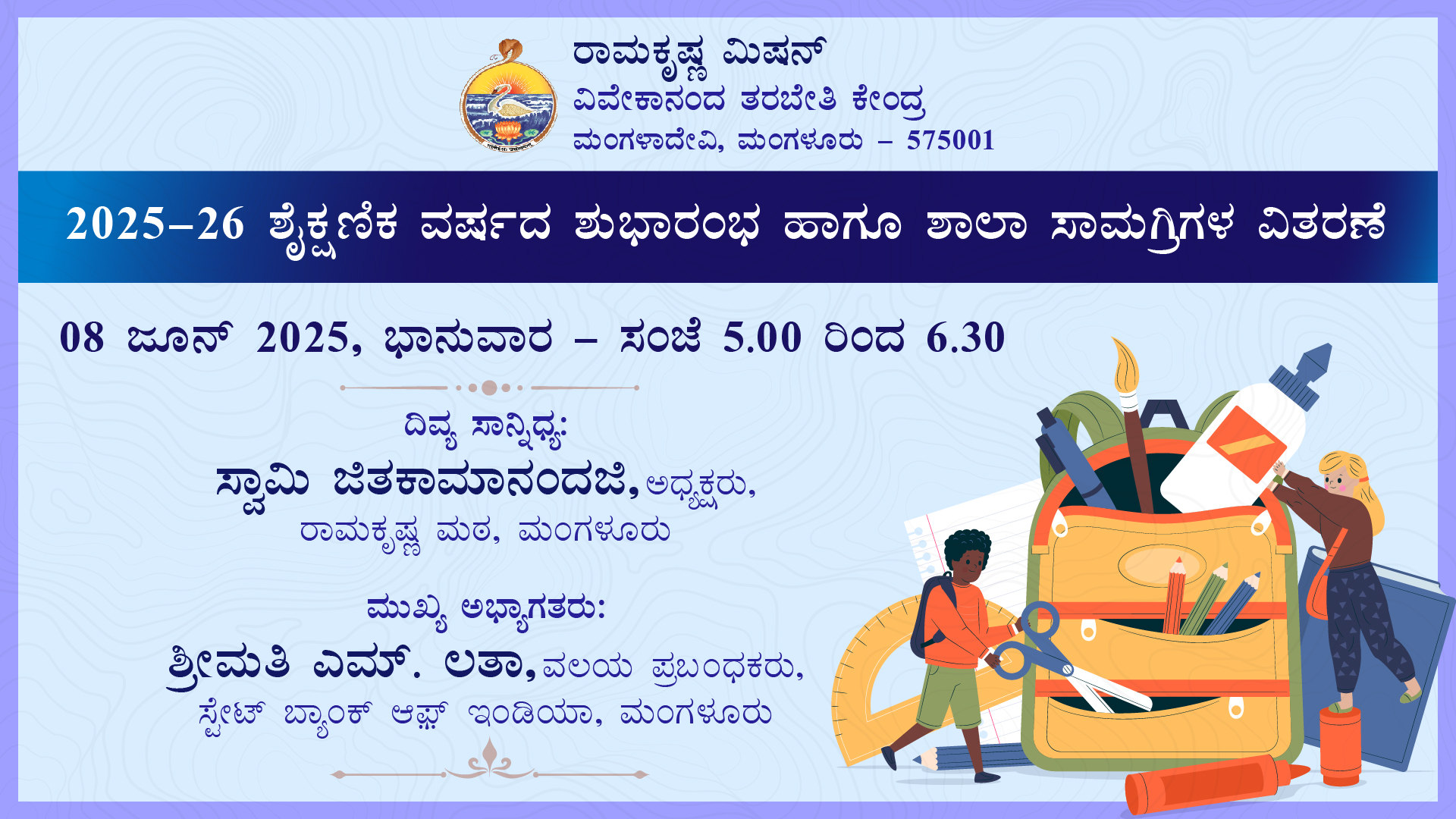Ramakrishna Math and Ramakrishna Mission, Mangaluru are a branch of Ramakrishna Math and Ramakrishna Mission Belur, Howrah West Bengal, India and are worldwide, non-political, non-sectarian spiritual organizations which have been engaged in various forms of humanitarian, social service activities for more than a century.