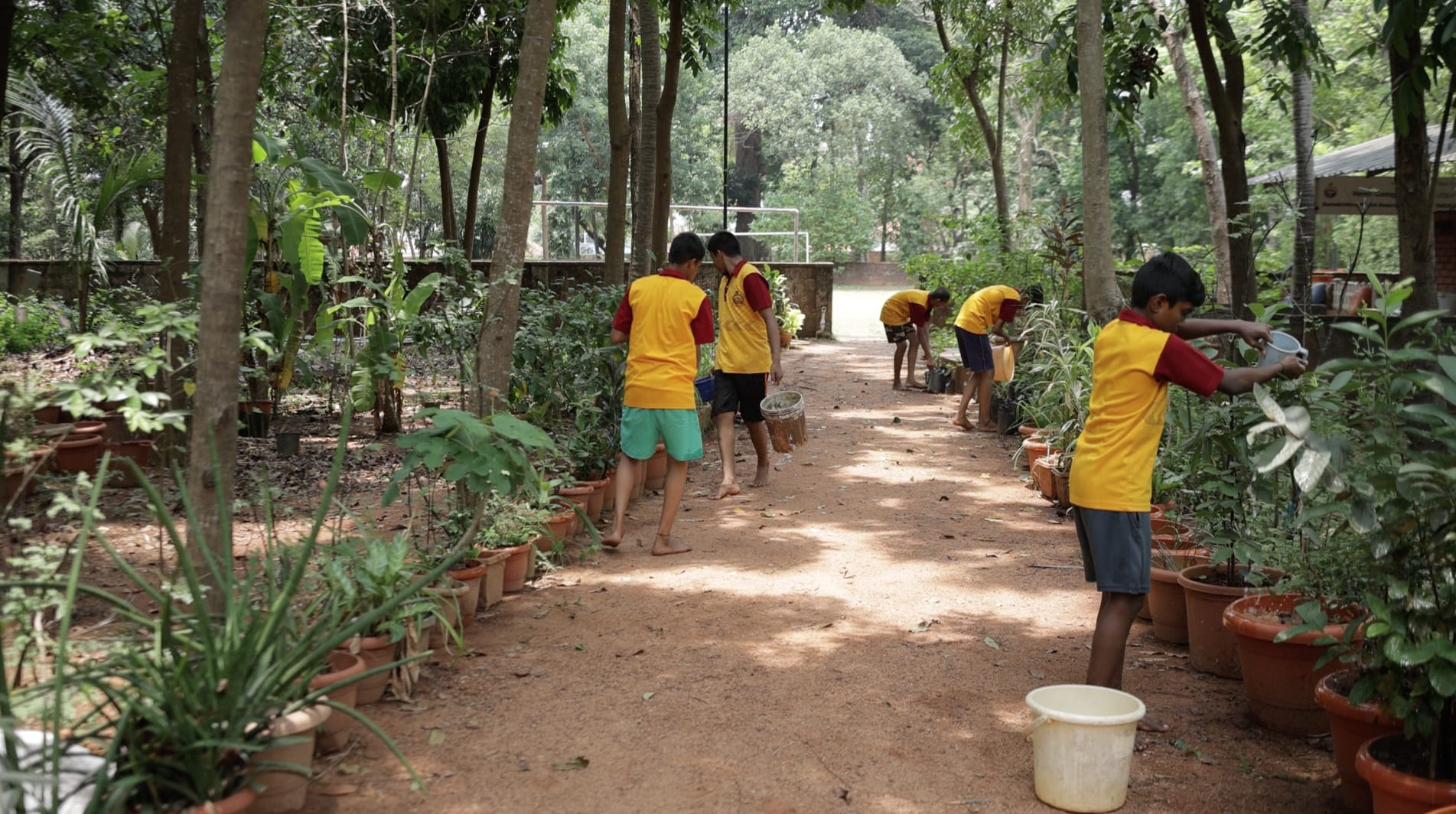 Ramakrishna Mission Balakashrama also provides students uniforms, textbooks, notebooks, school fees etc. In the Balakashrama, the boys are encouraged to cultivate virtuous tendencies, acquire the art of social duty, develop refined tastes, cultivate self-respect, etc. One of the important features is that the boys are allowed to manage the affairs of the Balakashrama, including the upkeep of the premises, gaining thereby the spirit of self-reliance, the dignity of labour, cooperation and personal effort. They participate in the daily routine of the Math such as the morning and evening congregational prayer. They are also taught to chant Vedic Hymns, Bhagavadgita etc.