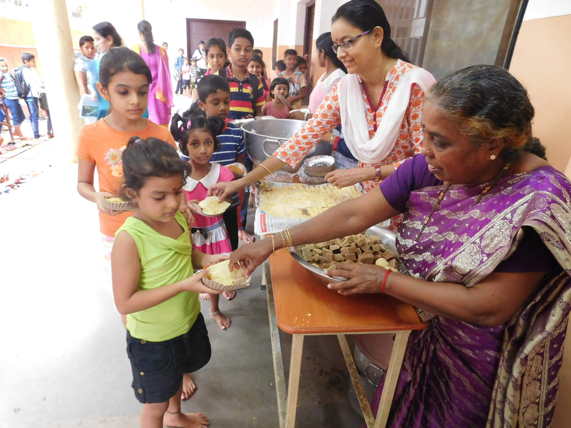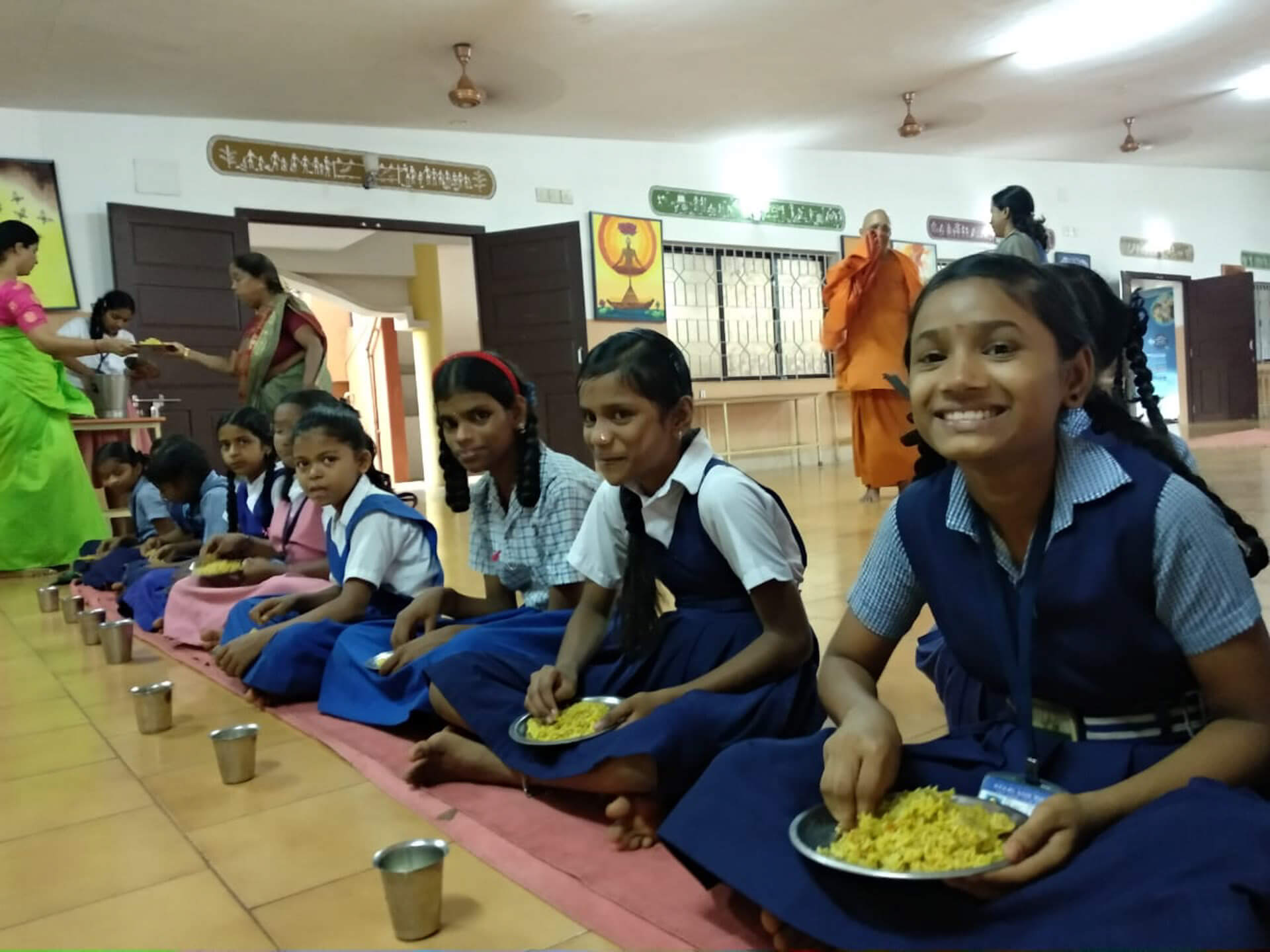 Children belonging to impoverished families from the locality participate in many of the programs organized by the Math. Such children are given nutritious food and milk at the ashram. They are taught by the trainers to maintain personal hygiene. They are also provided with soap, toothpaste, toothbrush and other toiletries.