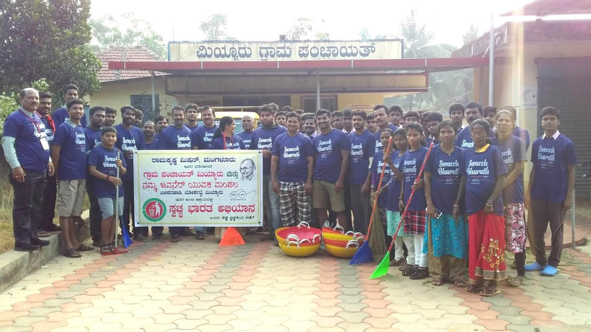 Clean Dakshina Kannada- Clean Udupi: More than 2000 cleanliness drive programmes were conducted in 200 villages of the districts. Swacch Gram programmes were organized in association with Dakshina Kannada and Udupi Zilla Panchayats. 100 volunteers from every village were nominated as members of the Abhiyan. They were provided with T-shirts with logos, gloves and other cleaning materials. These members took up shramdan programmes on one Sunday of every month in their respective villages.