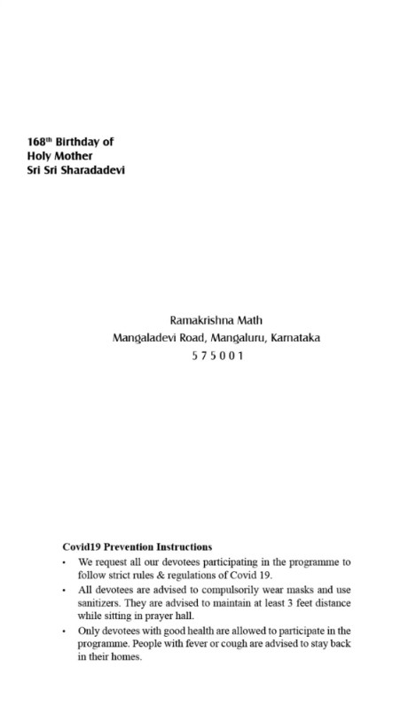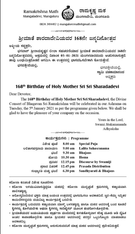 168th Birthday of Holy Mother Sri Sharadadevi
