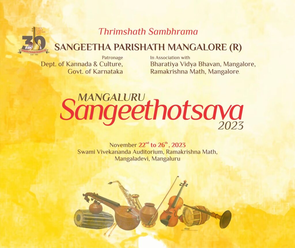 Ramakrishna Math, Mangaluru in association with Sangeetha Parishat Mangalore & Bharatiya Vidya Bhavan, Mangalore is organizing Mangaluru Sangeethotsava 2023 from 22nd to 26th November 2023 at Swami Vivekananda Auditorium. Details of the programme are given in the following pages. We invite all the interested to attend the programme & enjoy the renditions.