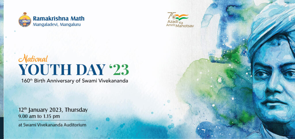 Ramakrishna Math, Mangalore will be observing National Youth Day on Thursday, the 12th January 2023 as per the programme given below. We invite all our young friends to attend the programme. Programme will be inaugurated by Sri Ravikumar M R, DC of Dakshina Kannada Dist. Swami Mangalanathanandaji of Ramakrishna Mission, Shivanahalli, Bangalore, Sri Vrushank Bhat, Editor of Vikrama weekly & Kumari Akshaya Gokhale, Lecturer, Karkala will be addressing & motivating the youths on different topics. Details of the programme are given below: