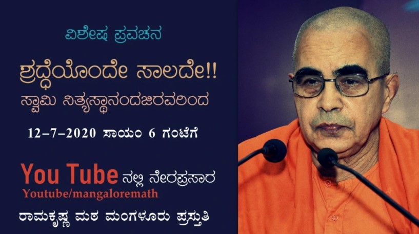 There will be special discourse in Kannada on Sunday, the 12th July at 6 pm by Swami Nityasthanandaji, Head of Ramakrishna Mission Ashrama at Davanagere on the topic, “Shraddheyonde Salade?” in the Youtube Channel of our Math. You may please watch it.