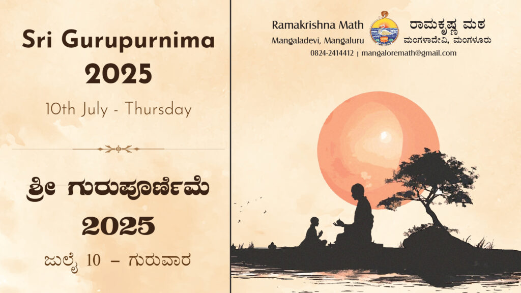 Sri Gurupurnima will be observed at Ramakrishna Math Mangalore on Thursday, the 10th July 2025 as per the programme given below. We invite all our devotees, friends & well-wishers to attend the programme.