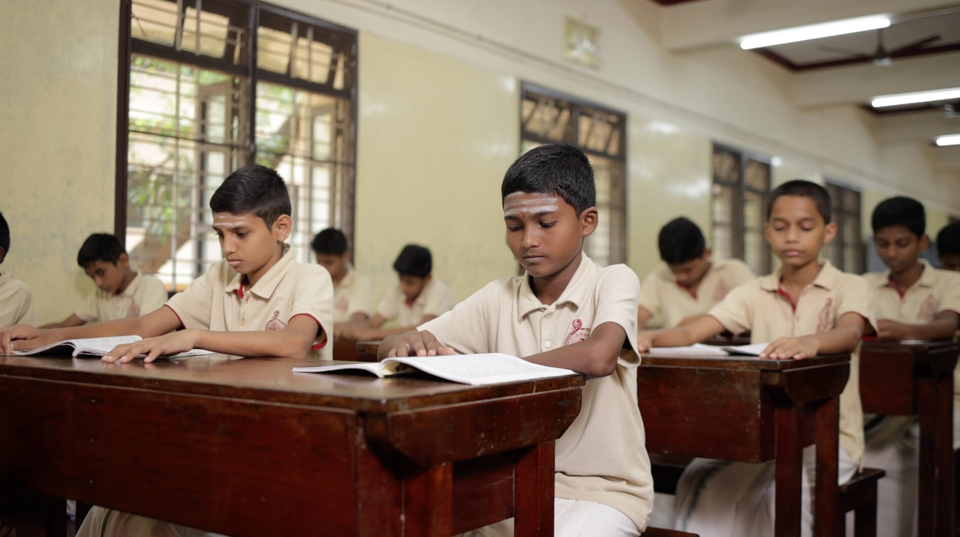 Ramakrishna Mission Balakashrama also provides students uniforms, textbooks, notebooks, school fees etc. In the Balakashrama, the boys are encouraged to cultivate virtuous tendencies, acquire the art of social duty, develop refined tastes, cultivate self-respect, etc. One of the important features is that the boys are allowed to manage the affairs of the Balakashrama, including the upkeep of the premises, gaining thereby the spirit of self-reliance, the dignity of labour, cooperation and personal effort. They participate in the daily routine of the Math such as the morning and evening congregational prayer. They are also taught to chant Vedic Hymns, Bhagavadgita etc.