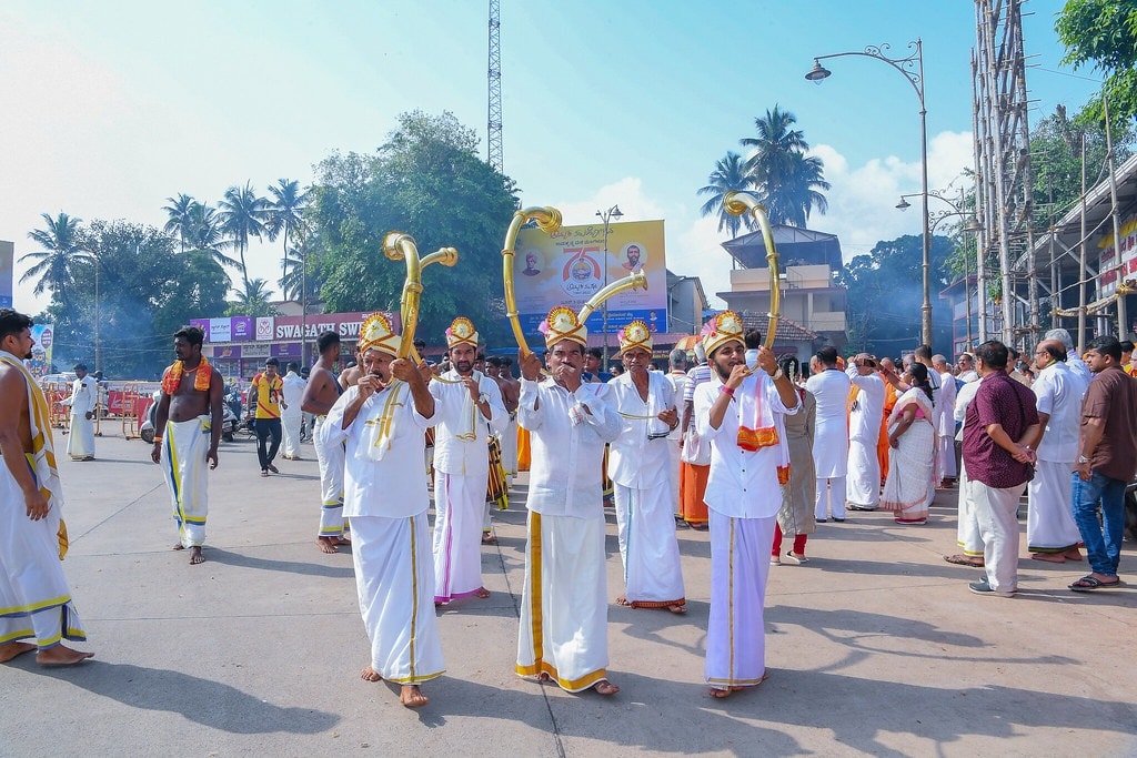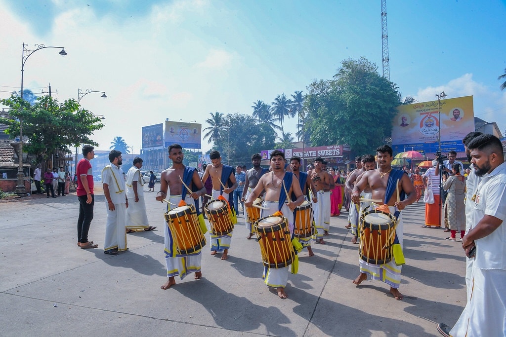 After a special puja at Mangaladevi Temple, Srimat Swami Gautamananaji led a procession of sadhus, volunteers & devotees towards Ashrama accompanied by various cultural troupes and artists.
