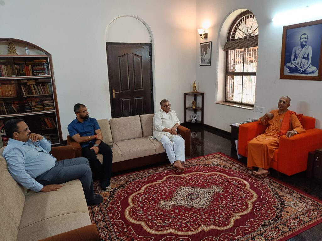 RSS Akila Bharatha Vyavastha Pramuk Sri Mangesh Bhende visited Ramakrishna Math Mangaluru and took blessings of Swami Jitakamanandaji, Adhyaksha of Ashram. Meanwhile, Swami Ekagamyanandaji briefed about ashram’s actives & Swacch Mangaluru Abhiyana.